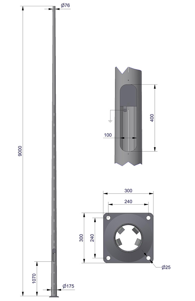 Ettergivende HE-mast konisk 9,0 m - Varmforsinket
