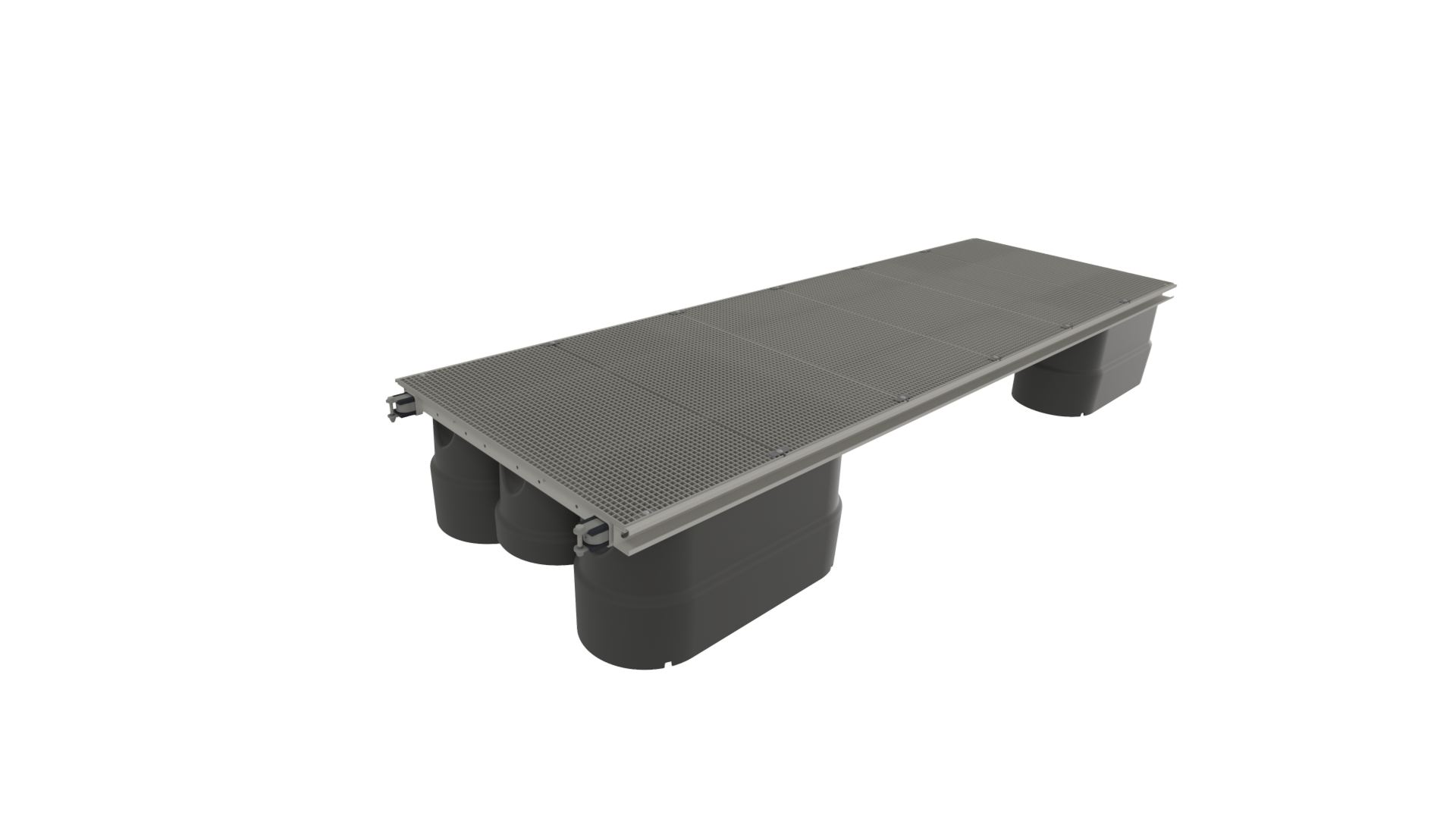 Leveres med varmforsinket gitterristdekke som sørger for ekstra trygg ferdsel med snøfritt dekke og som slipper gjennom mer lys og bidrar til fotosyntesen i sjø. Alternativt leveres tredekke.