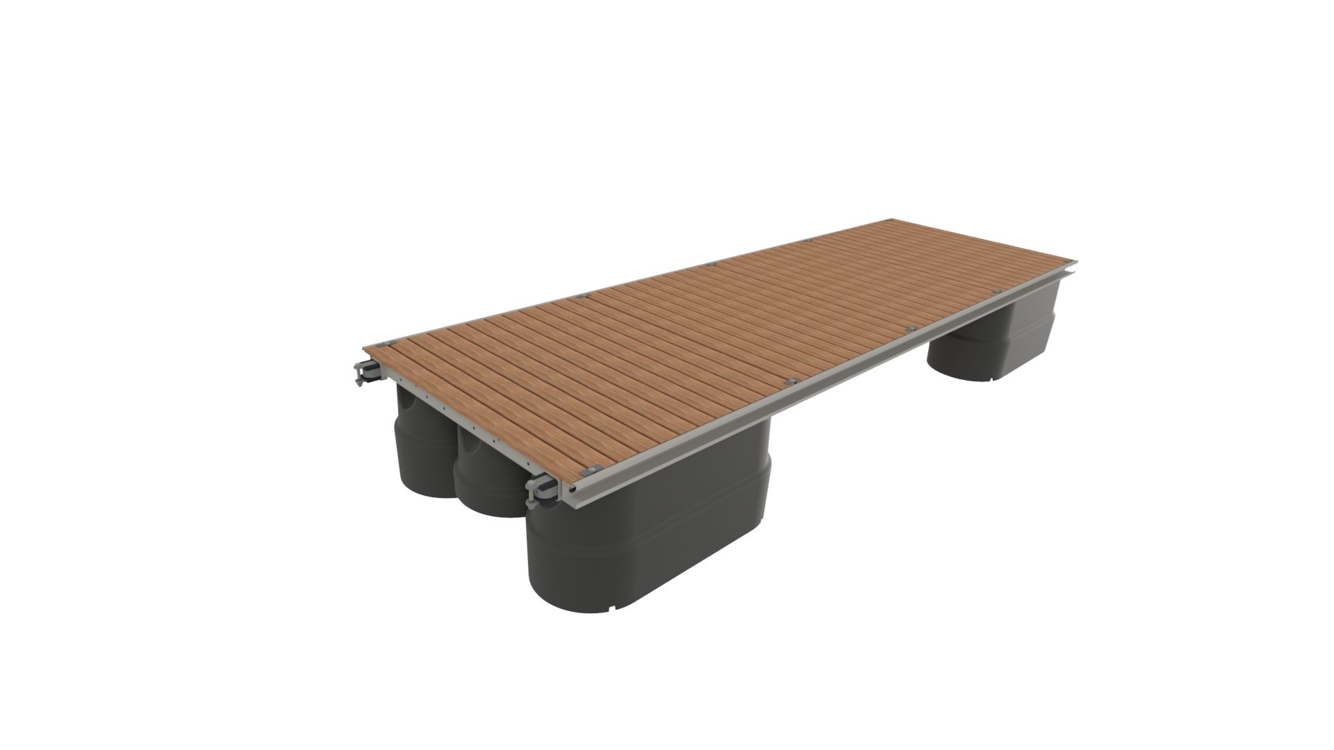 Ende-stålbryggen leveres som standard med 4 stk. 630 liters pontonger og 1 stk. 420 liters pontong, beregnet for utriggere på begge sider. Bryggen kan også leveres med 420 liters pontonger som gir 22 cm lavere fribord, noe som vil være bedre egnet om det er utriggere kun på en side eller uten utriggere. Vi anbefaler uansett at det tas kontakt med selger for beregning av beste konfigurasjon. Pontongene er av helstøpt polyetylen og er fylt med polystyren. Pontongene er synkefrie.