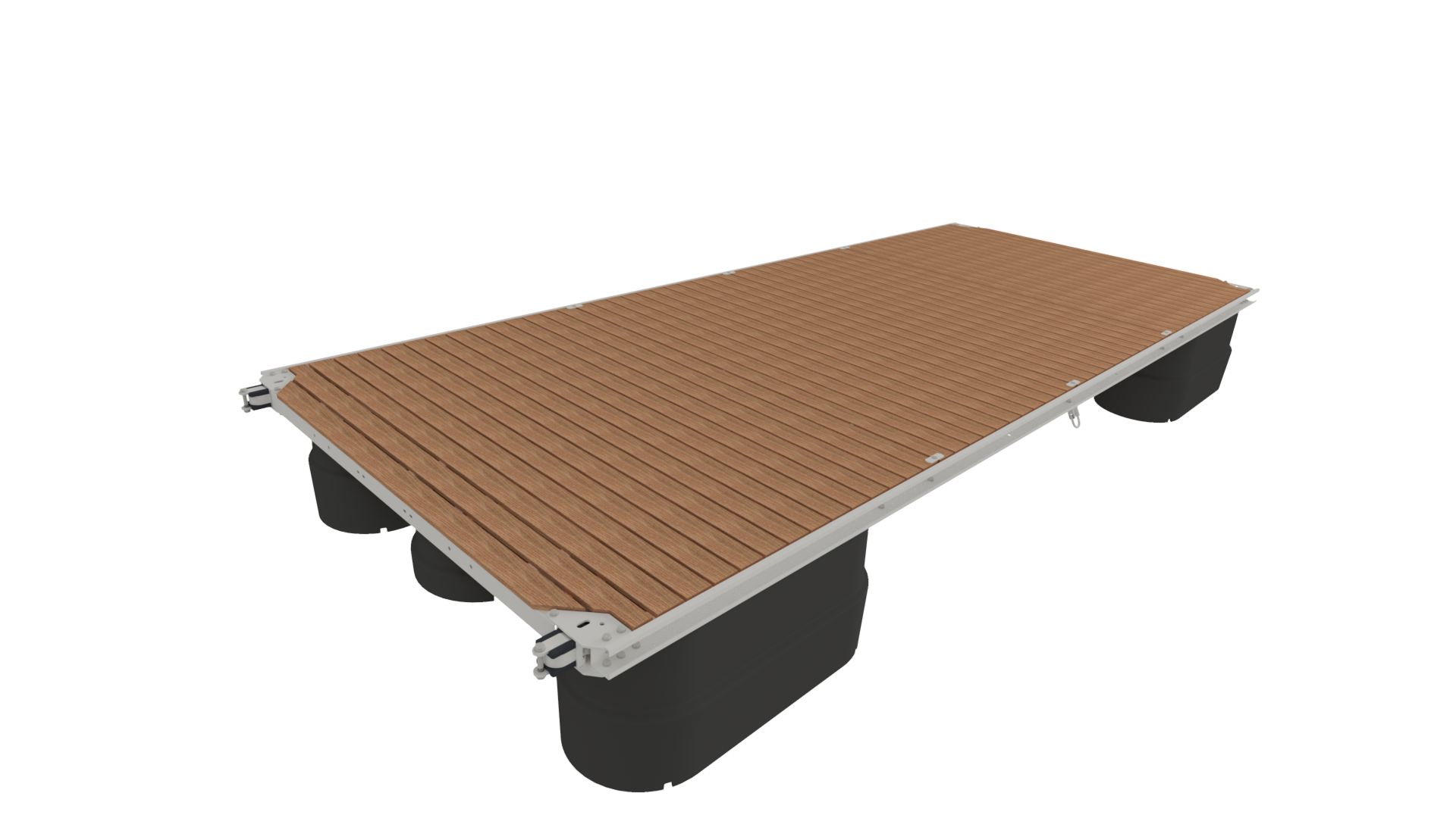 Ende-stålbryggen leveres som standard med 4 stk. 630 liters pontonger og 1 stk. 420 liters pontong, beregnet for utriggere på begge sider. Bryggen kan også leveres med 420 liters pontonger som gir 22 cm lavere fribord, noe som vil være bedre egnet om det er utriggere kun på en side eller uten utriggere. Vi anbefaler uansett at det tas kontakt med selger for beregning av beste konfigurasjon. Pontongene er av helstøpt polyetylen og er fylt med polystyren. Pontongene er synkefrie.