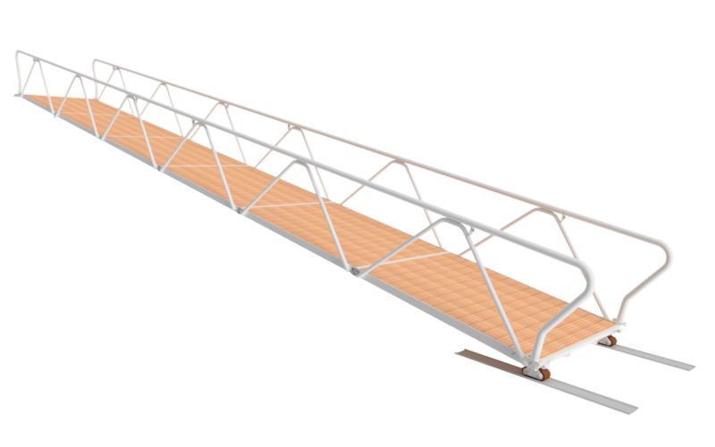 Tung landgang 1,5 x 12 m leveres med trykkimpregnert furudekke. Leveres med boogi-hjul.